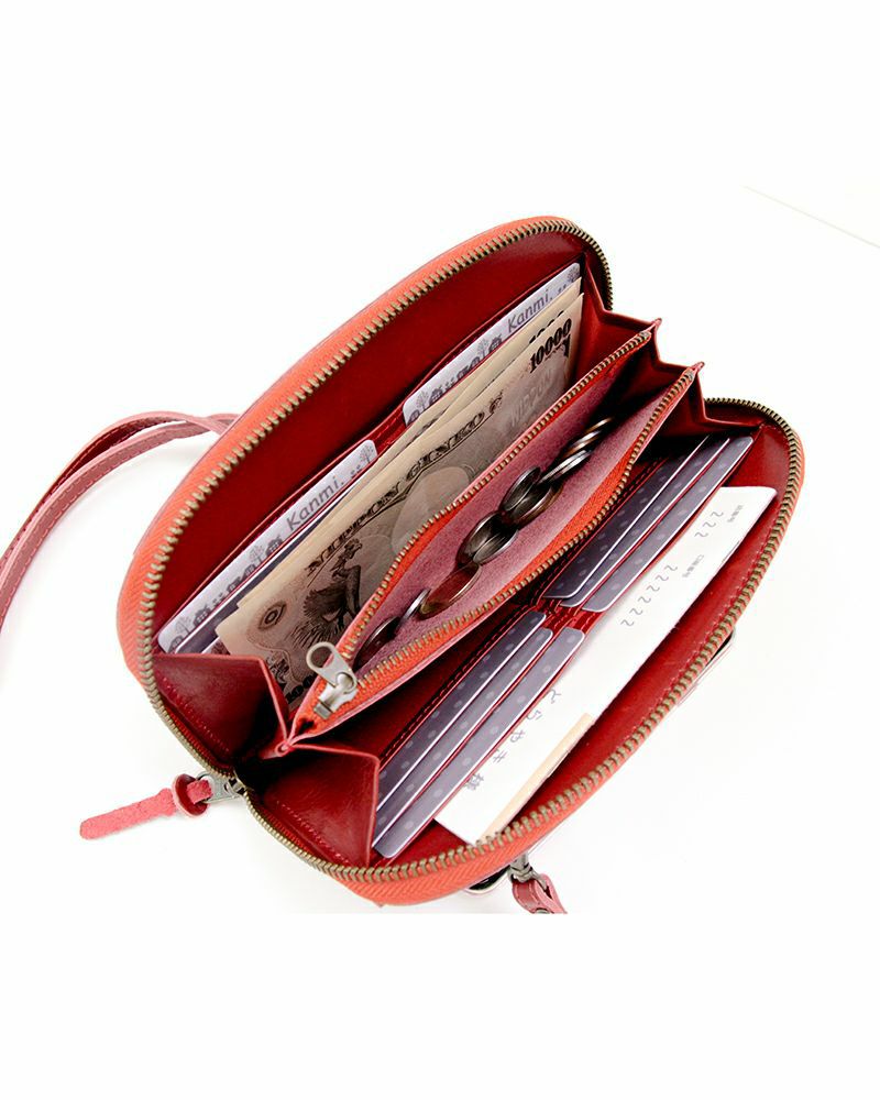 ショルダーストラップが付いたポシェットタイプの長財布。お財布としてはもちろん鍵を入れたりスマホを入れたりできます。ストラップを取り外せば、シンプルな大容量長財布としても使えます。