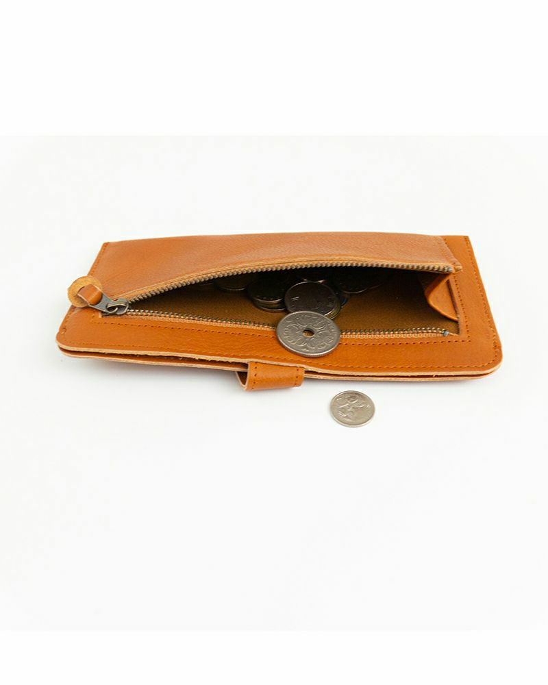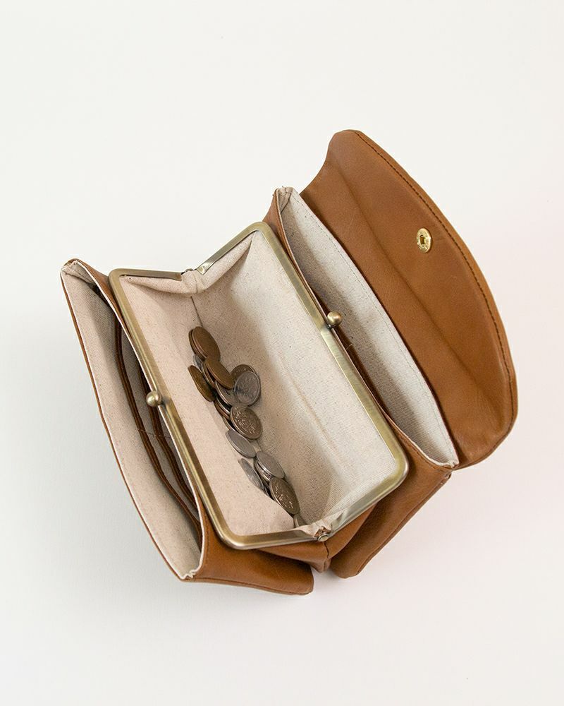 長財布にポケットがくっついたような、使い勝手の良いデザインのお財布ポシェット。 パウンドケーキのように、上半分がやさしい曲線でできています。 毎日持ちあるくお財布にはうれしい、キズ付きにくい丈夫な革を使っています。